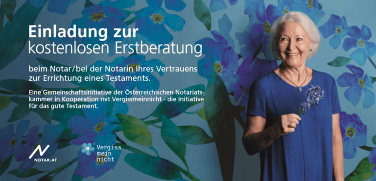 Sichern Sie sich Ihren "Notarscheck": eine Einladung für ein kostenloses Erstberatungsgespräch, welche Sie bei dem/der NotarIn Ihrer Wahl einlösen können.